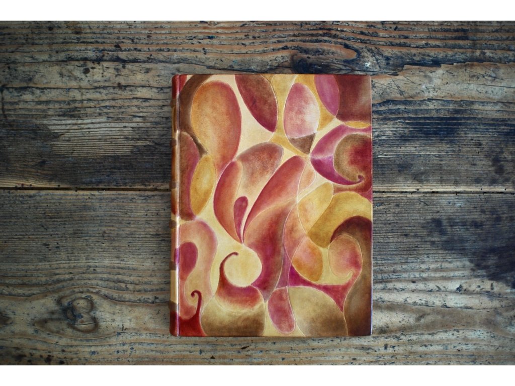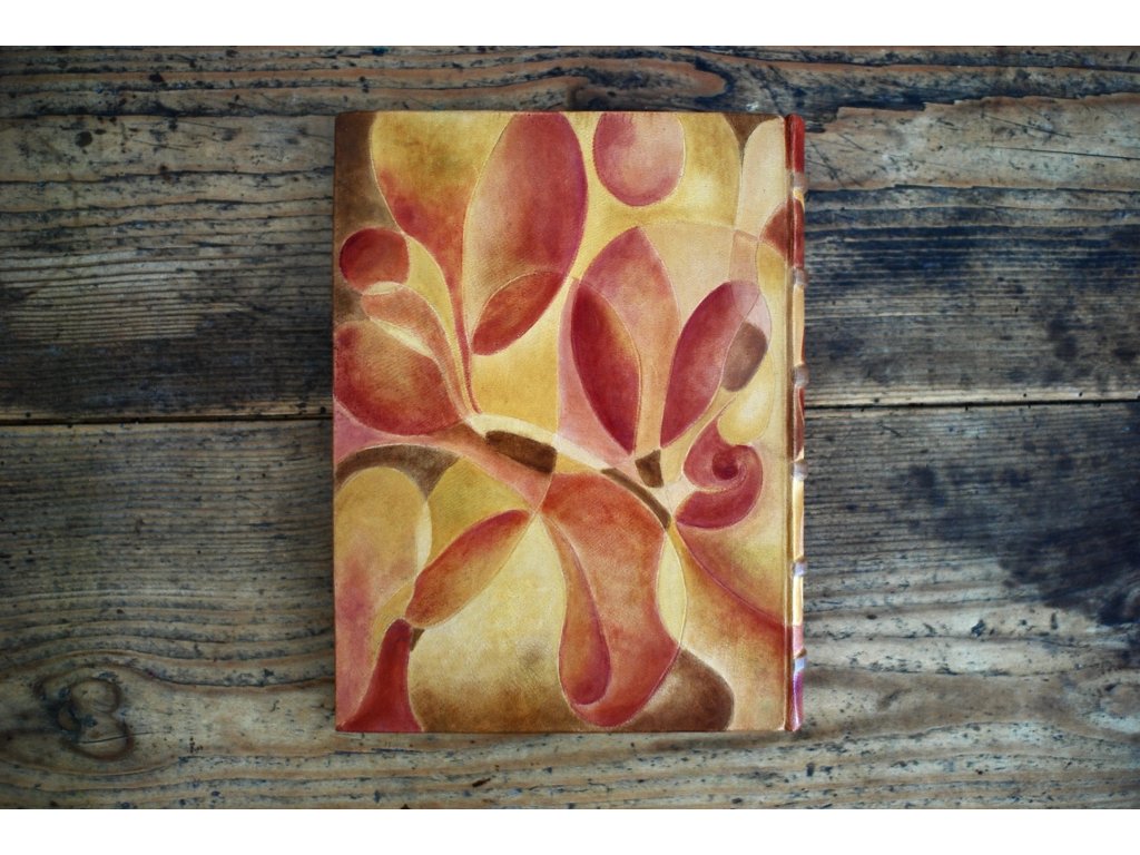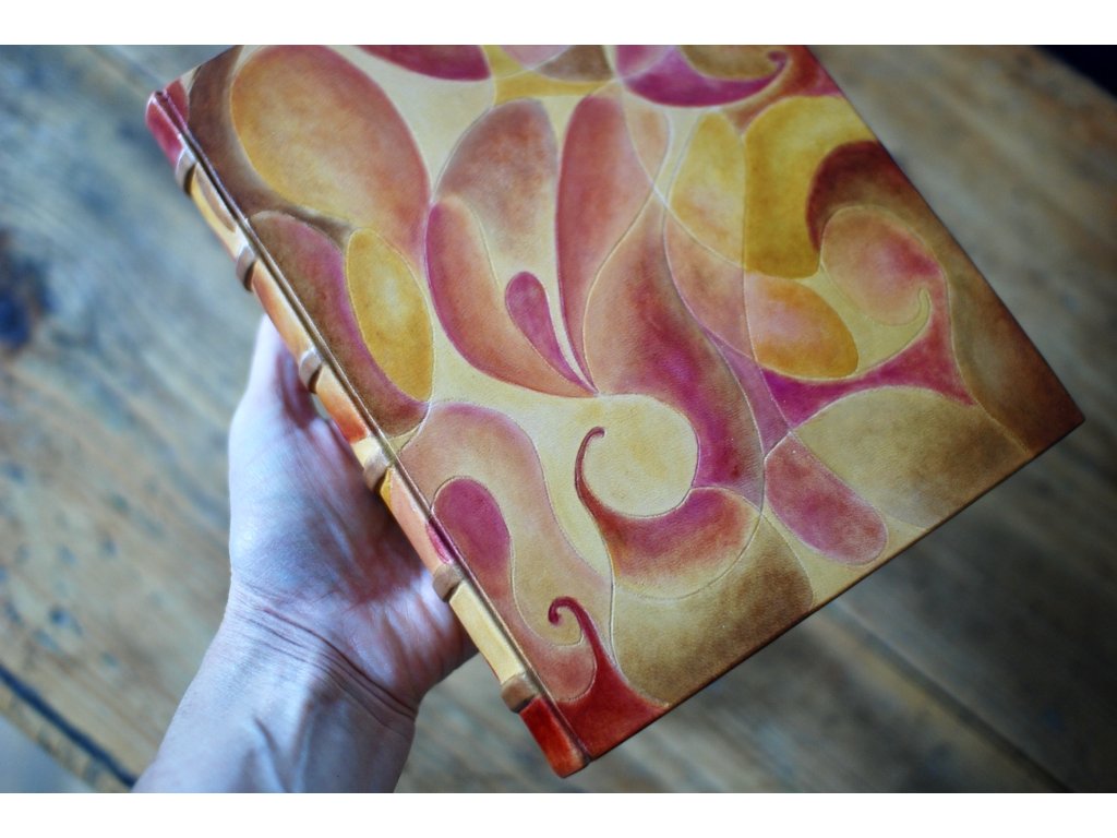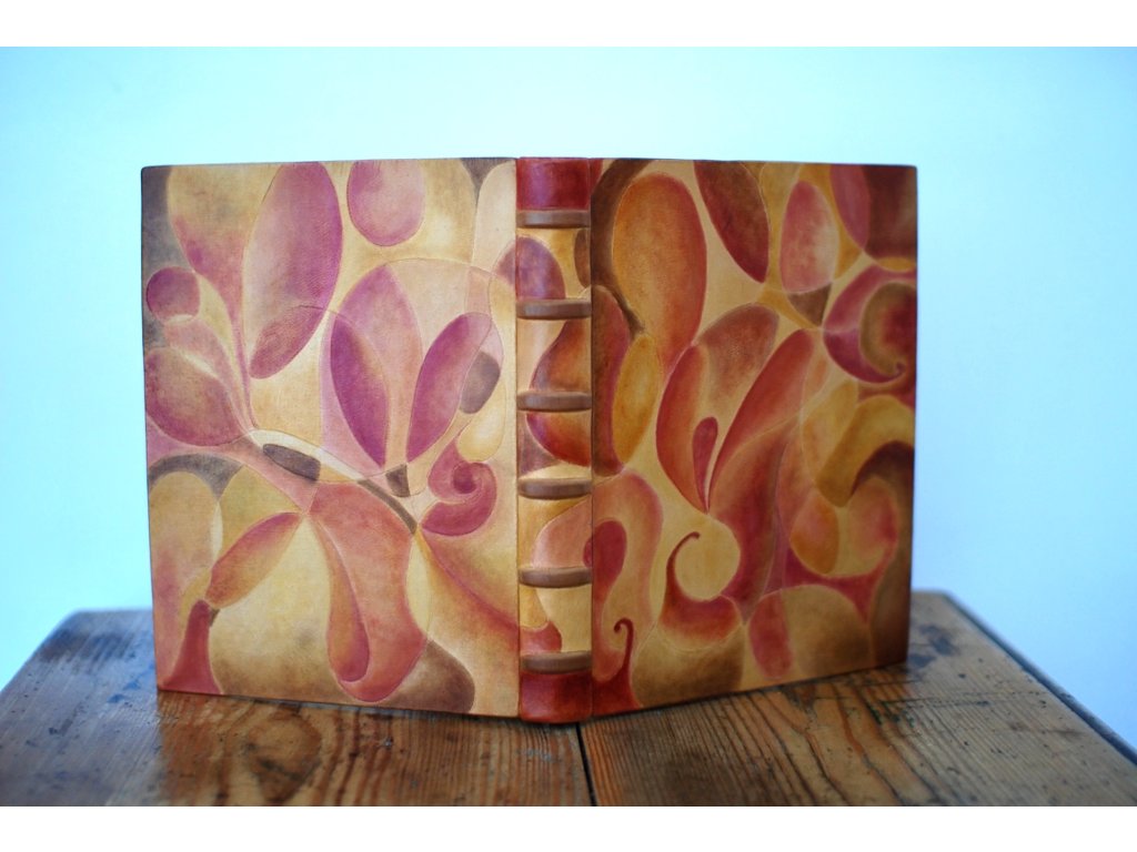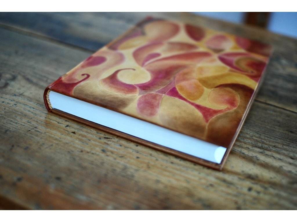 - tvrdé desky potažené pravou ručně barvenou kozí kůží